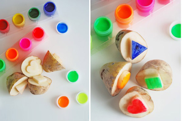 2 yaş etkinlikleri arasında bebeklerin en sevdiği aktivite olan patates baskısı, ince motor becerileri geliştirmekle kalmıyor, çocukların hayal gücünün de gelişmesini sağlıyor. Peki, patates baskısı nasıl yapılır? Patatesi eşit bir şekilde ortadan ikiye kesin ve iç yüzeyine geometrik şekiller çizin. Çizdiğiniz alanın dışında kalan yerleri keserek derinlik elde edin. Daha sonra ortaya çıkan şekli boyayın, patates baskımız hazır! Şimdi ister düz bir kağıda, isterseniz eski bir tişörte bebeğinizle birlikte rengarenk baskılar yapın.