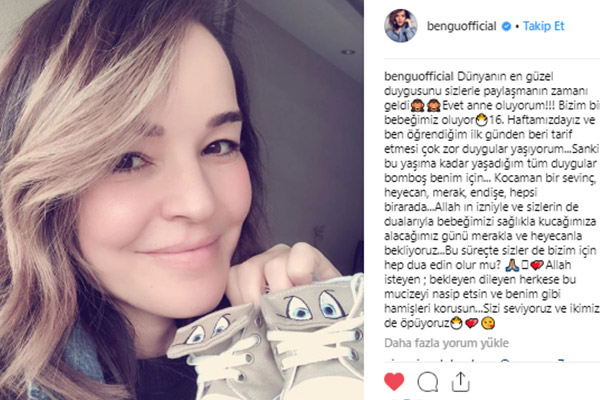 Önceki gün sosyal medya hesabından 16 haftalık hamile olduğunu açıklayan Bengü, bebeği ile ilgili yaptığı açıklamasında şu cümlelere yer verdi; ‘Dünyanın en güzel duygusunu sizlerle paylaşmamın zamanı geldi. Evet anne oluyorum, bir bebeğimiz olacak! 16. Haftamızdayız ve ben öğrendiğimden beri tarif edilmesi zor duygular yaşıyorum. Sanki bu yaşıma kadar yaşamış olduğum duygular bomboş. Kocaman bir sevinç, merak, heyecan, endişe, hepsi bir arada. Allah’ın izni ve sizin duanızla, bebeğimizi sağlıklı bir şekilde kucağımıza alacağımız günü heyecanla ve merakla bekliyoruz. Siz de bizim için hep dua edin olur mu? Allah; isteyen, dileyen, bekleyen herkese bu mucizeyi nasip etsin ve benim gibi hamiş olanları korusun. Sizi seviyoruz ve ikimiz de öpüyoruz.’