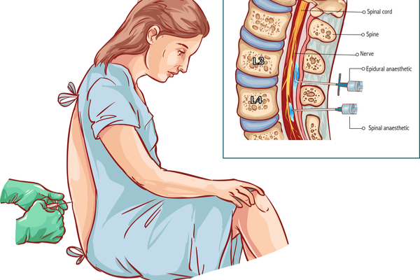 Omuriliği çevreleyen zara bir ilaç enjekte edilir ve belden aşağısının uyuşturulması sağlanır. Anestezi uzmanı tarafından, ağrıların hissedilmeye başlandığı aktif fazda yapılır. Ebeler ve hemşireler tarafından takip edilir.