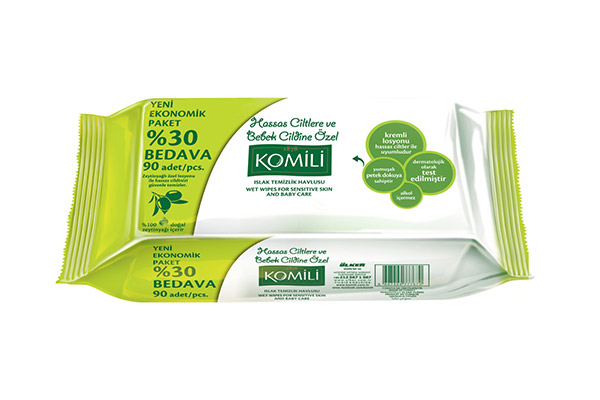 Komili, ürettiği %100 doğal zeytinyağlı krem içeren bebek bezinden sonra, aynı formülasyonu ıslak mendillerinde de kullanmaya başladı. Oldukça yumuşak bir dokuya sahip olan ürün, dermatolojik tüm testleri başarıyla geçti. Marka, yenidoğan döneminden itibaren tüm hassas ciltli bebeklerde kullanılabileceğini belirtiyor.